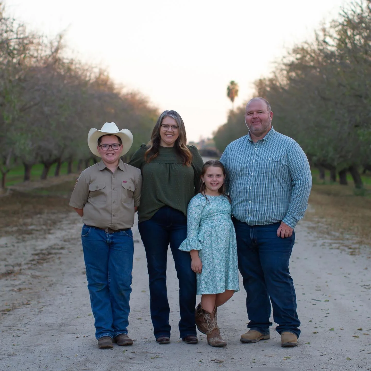 My husband and I are both 4th generation California farmers. Today, we grow almonds alongside my husband’s family and our kids in the Southern Central Valley.